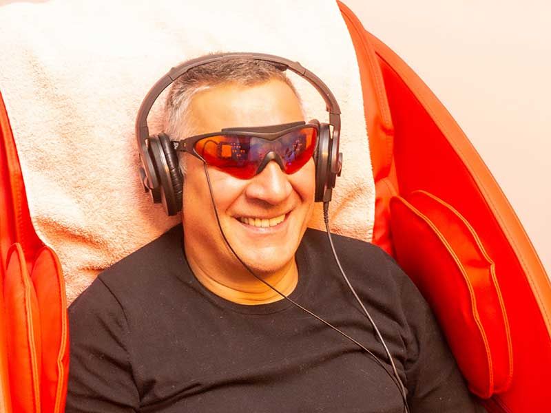 Im Anschluss eine Entspannungsreise im Massagesessel mit dem Tiefenentspannungssystem (Brain light) von Brain Light Massage 40`